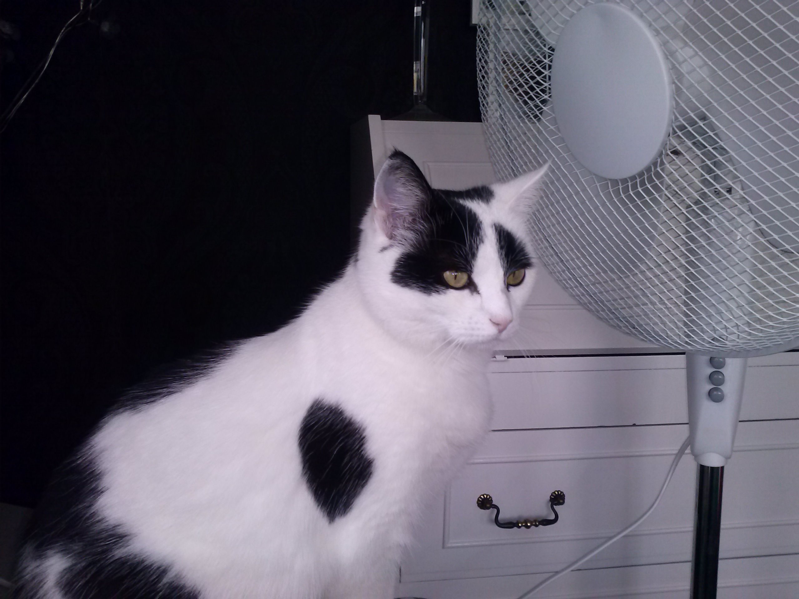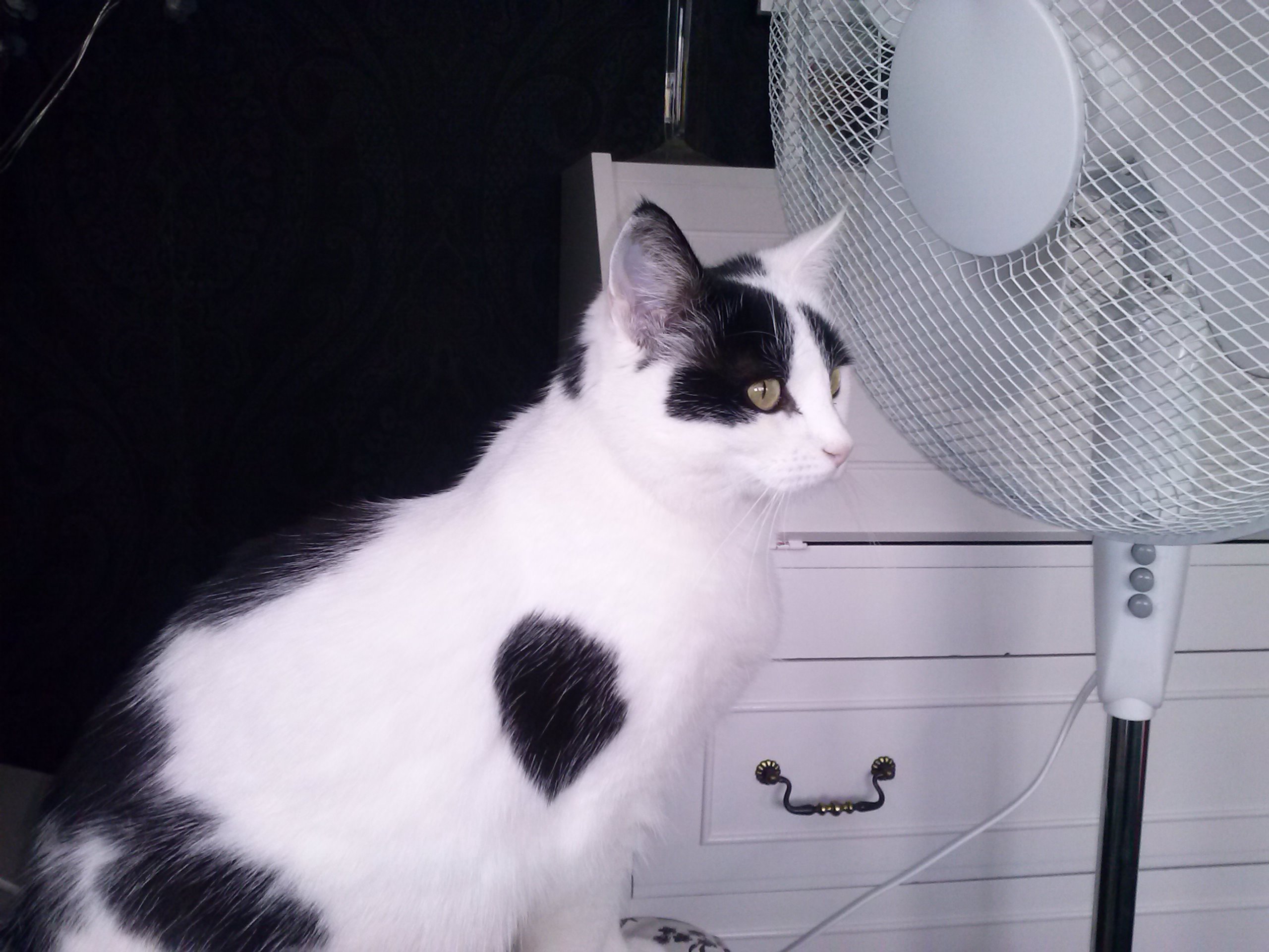 ROFMMTO (rolling on floor meowing my tail off) . Our kitties want to be as far from the fans as possible, and the hair dryers. Happy Mother’s Day you beautiful kitty.