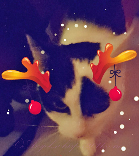 Happy New Year Binky (and family).! You hide from visitors too? We are not fond of them either. We LOVE your picture of the Angels! There are so many this year and your New Year’s card is gorgeous (just like you). Sending you our purrs and live