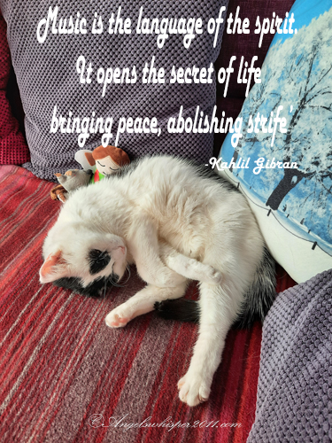 Binky you look SOOOOOO peaceful and cozy getting ready for your nap…..loud music isn’t the kind of music that puts me to sleep either….I prefer the music of my snoring instead! Tee Hee