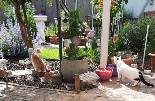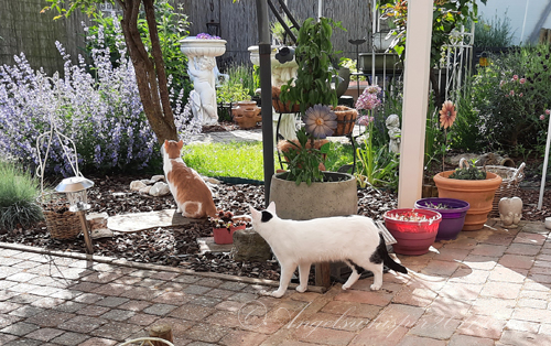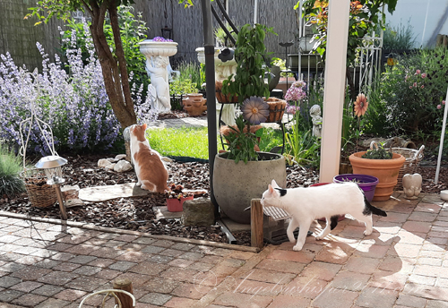 You two are just the very best of kitties. Yes you are. I’m glad you like to play with the critters in your yard. Especially the angels.