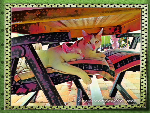 Iss kewler heer an furry Autumm like. Mee sitss out fore a bit inn Condo an then comess inn. Mee likess to bee warm now that mee iss older…..