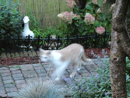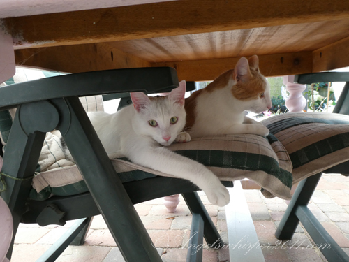 Hi boys! So your Granny has closed off all your escape routes out of the garden huh? Well know what? You’re safer right there in your very own backyard with your pretty garden and nice nap spots! Your Granny has a green thumb (well – maybe it isn’t actually GREEN but she has a lot of luck with making new plants from seeds!). It’s getting quite cold here and the leaves are turning pretty colors then falling on the grass like pretty colored rain! Halloween is almost here too – and we think your poem was REALLY REALLY good. Thank you again for the great TEASER photo. Mom and I appreciate it lots! We will talk to you again when Mom and Dad come home from vacation to Maine.