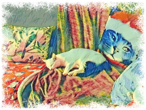 You are naughty kitties- I hope Santa doesn’t find out. You shouldn’t scare Granny like that. Beautiful art. Thank you for the puzzles. XO