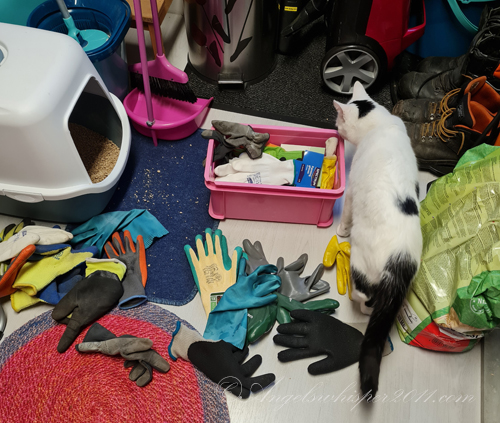 Gloves galore, kitties. Where’s the kitten mittens? You all have great fun fill-ins fur us. Lynn has the tree decorated and thinks back decades old memories too.