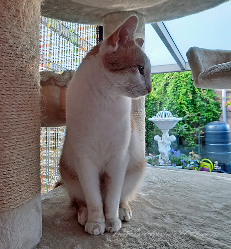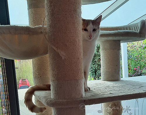 Charlee: โ€œHello boys! You have a fantastic cat tree!โ€Chaplin: โ€œHappy belated birthday to your nephew! 16, wow, he is as old as our sister Trixie who we never met!โ€Charlee: โ€œFour more years and he will have caught up to our legendary sister Trouble the Kitty!โ€