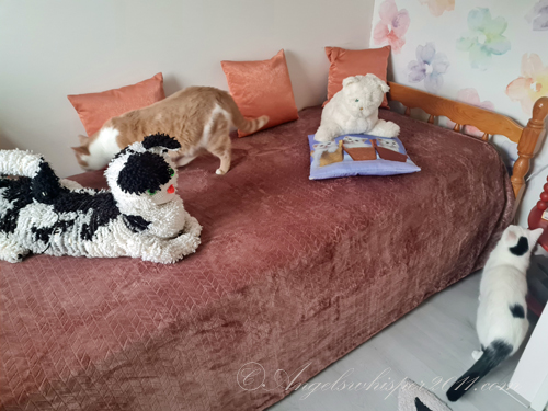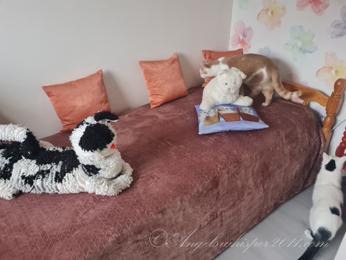 Mew mew mew Neffkitty Peachy “ON DUTY”!!! That bed DOESS look so comfy an cozy….mee mite just curl up heer an have a ZZZZZZZZZZZzzzzzzz…..