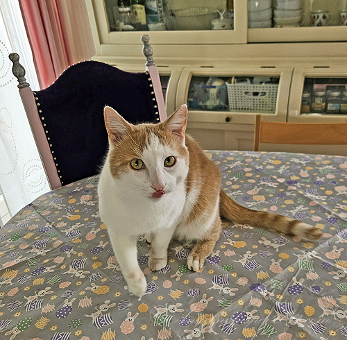 from the tablecloth😹