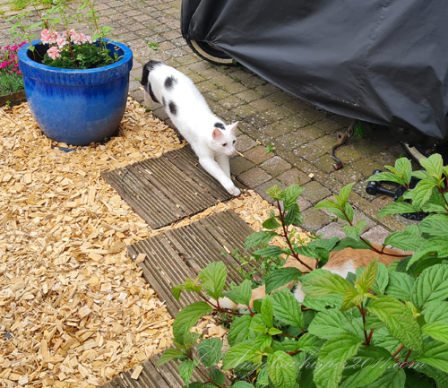 The Summer is just about over and I have yet to do effurrything I want to do, like making furriends with that little, very little birdie that was in our Fallopia a few days earlier. I was so enthusiastic that I spontaniously ran through it and stood on our shed in no time. Wrenny (the wren) flew towards the windows and had to sit down near to Granny, who wanted to take her away from that easy-to-catch spot, but he flew into the Butterfly bush and she said to him that it was better to find another garden, for his own safety and Wrenny listened and flew away. Granny went immediately into the shed to get the stairs out, but I was so confused about what I did, that I came down by the Fallopia and Granny got her pruning shears and cut the whole plant. She didn’t want this to happen again, so no more birdies…and no more Fallopia’s…and no more stress for Granny🙀